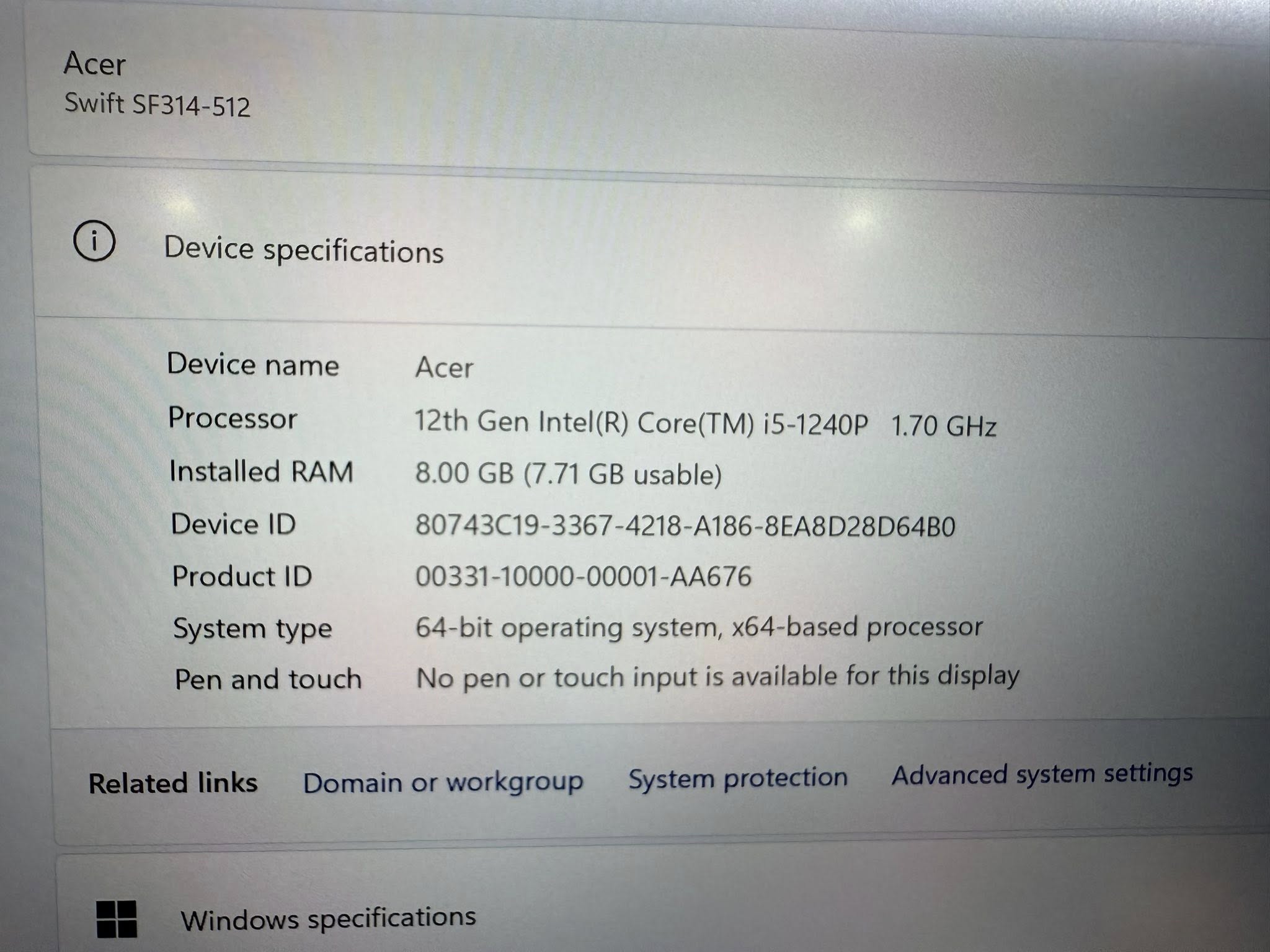 Mã sản phẩm: Acer Swift 3 i5 1240p/8G/512G/14.0 2k5 full nhôm led phím