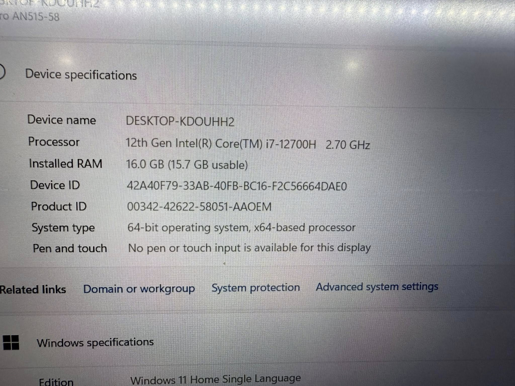 Gaming Acer AN515-58 i7 12700H/16G(16x1)/512G/RTX 3050/15.6FHD 144hz/Win11
