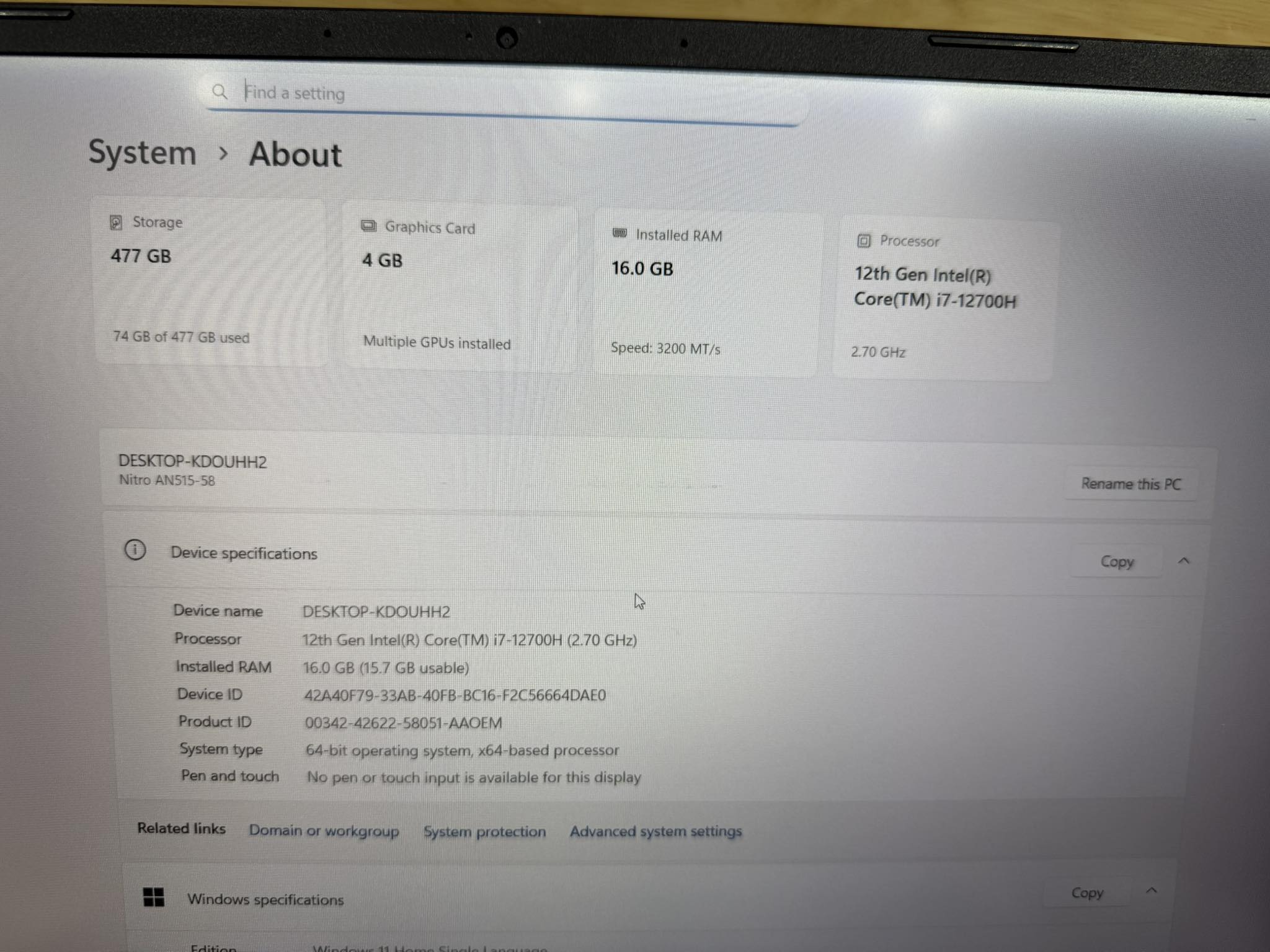 - Acer Nitro 5 I5 11400H/16G/512G/GTX 1650 4G/15.6FHD 144hz