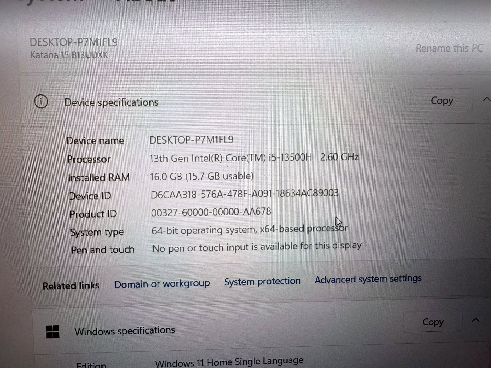 Gaming MSI KATANA 15B13U